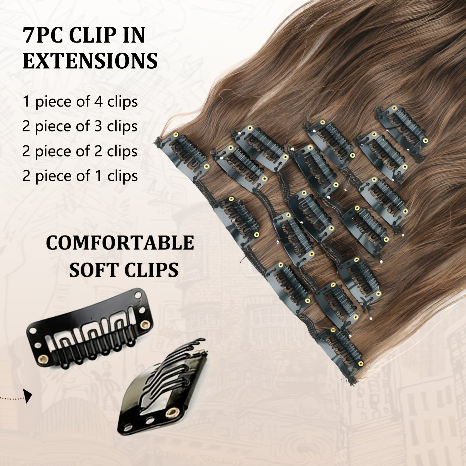 7 Sets (16 Clips) Clip-In Curly Hair Extensions for Women - 24" Long Blonde/Brown/Beige/Balayage Ombre Wavy Wig Pieces, -Looking Volume & Length for Everyday, Parties, Weddings, Sensitive Scalp Friendly - Easy Clip-On Extensi