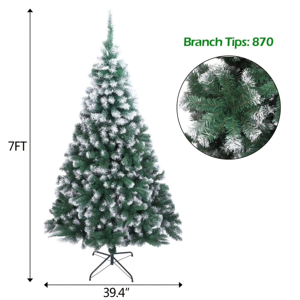 8ft Full Green Flat Top Christmas Tree with Sturdy Metal Stand - 1138 Branches for Indoor And Outdoor Holiday Decorations