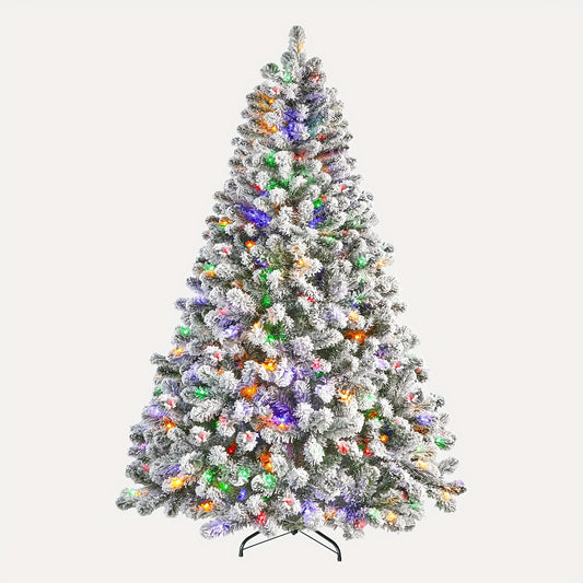 4/5/6/7/7.5/9ft Full Snow Flocked Xmas Tree 2025 New Style - 100-450 Warm White Lights, 301-1213 Lush Branches, Foldable Base | Ideal Holiday Decoration for Home/Office/Party