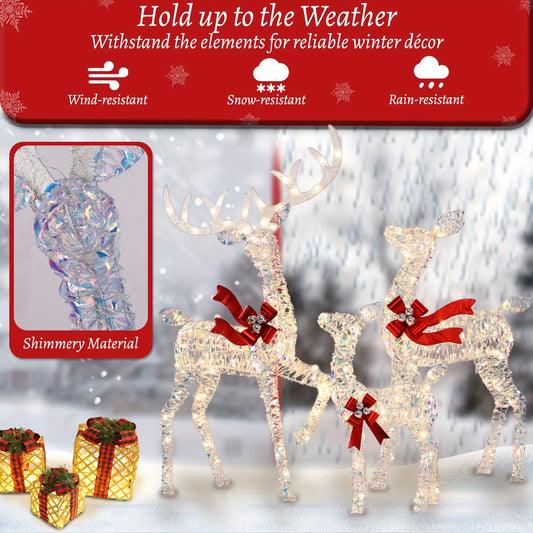 3pcs Large Lighted Christmas Deer Family Set, Christmas Indoor And Outdoor Decoration with 225 Warm White LED Lights, Ground Pegs, Cable Ties. Suitable for Patio Lawn Garden Party-Colorful, Holiday Deer Family, Led Lawn Orna