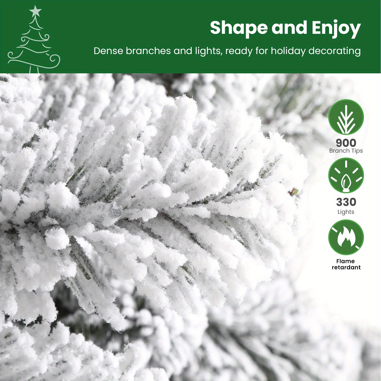 6.5ft Prelit Snow Flocked Artificial Christmas Tree with Remote Control - 170-640 RGB Lights, 378-1938 Branch Tips, Easy to Assemble, Minimal Fluff Shedding, Full & Lush Foliage for Home, Office, Party Decoration, 4/5/6/7/7.5