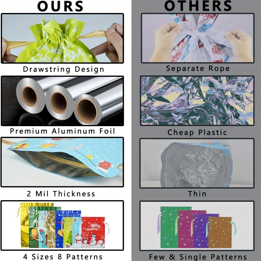 MERGROLY 28pcs Christmas Drawstring Gift Bags with Ribbon - 4 Sizes (Jumbo/Extra Large/Medium/Small) & 8 Festive Designs, Durable Polyester Holiday Wrapping Bags for Xmas Presents, Party Favors, Goody Bags - Reindeer, Snowfla